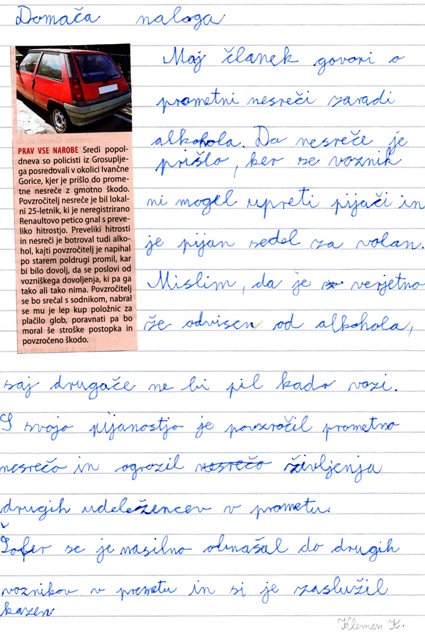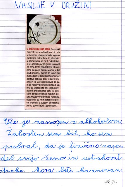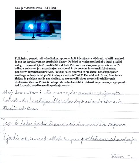 Za domačo nalogo so morali v časopisu ali na spletu poiskati prispevek povezan z nasiljem ali odvisnostjo in poleg napisati svoje mnenje o tem dogodku.