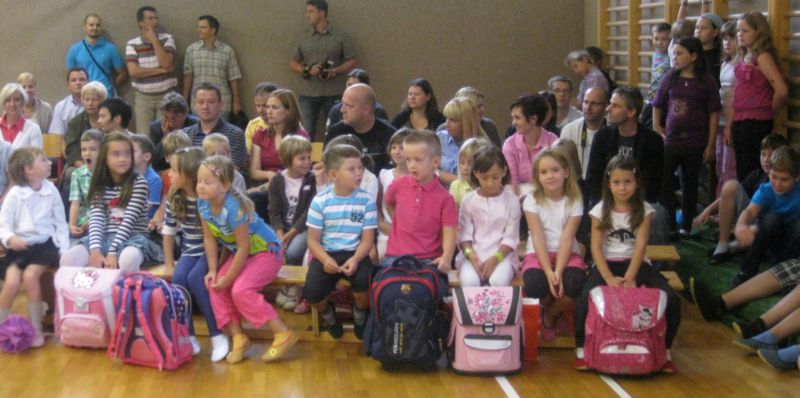 20 novih obrazov in 20 novih torb je prišlo v šolo. Šolarji so se jim predstavili s krajšim programom.