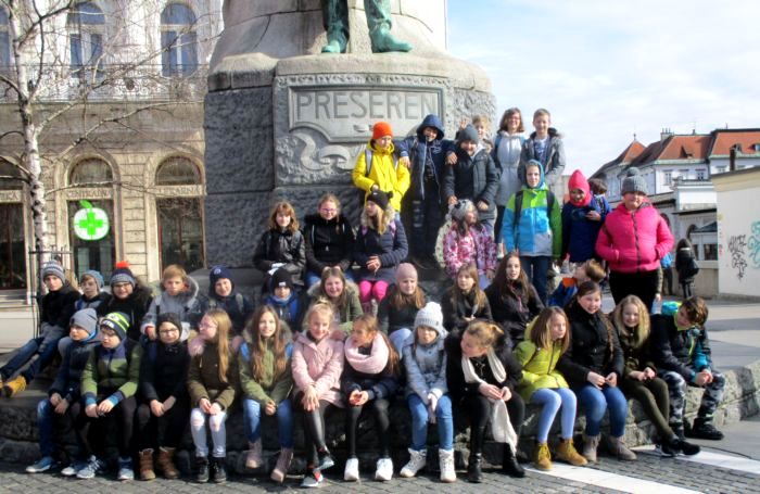 do Tromostovja in se fotografirali pred velikim Prešernovim spomenikom. Pot nas