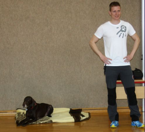 v šolo. Prvo uro smo šli v telovadnico. Tam smo spoznali pasjega inštruktorja