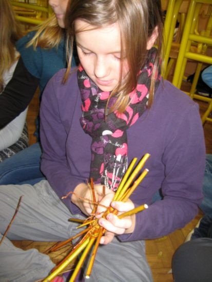 takrat, kadar ima v rokah šibo ... šibe, da ne bo pomote. Gospod Gamze je pravi mojster v pletarstvu. Obiskal nas je v oddelku podaljšanega bivanja. Veliko zanimivega nam je povedal in še več pokazal. Pri nas je bil na obisku le dve uri in v tem času je ustvaril zares lep izdelek. In ob delu je kramljal z nami, nas učil, popravljal ... |