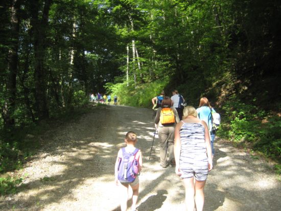 | Sobotno jutro in mi gremo v šolo. V bistvu, mimo šole. Še en dogodek iz našega letnega delovnega načrta bomo obkljukali. Učenci s starši in učiteljice jo mahnemo navkreber po gozdni cesti proti vrhu. |