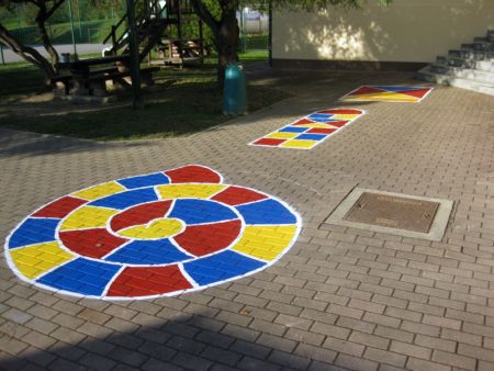 Ob igrišču so narisali ristanc in polža. Hišnik je prebarval hišico, ki so jo nato poslikali z otroškimi motivi.