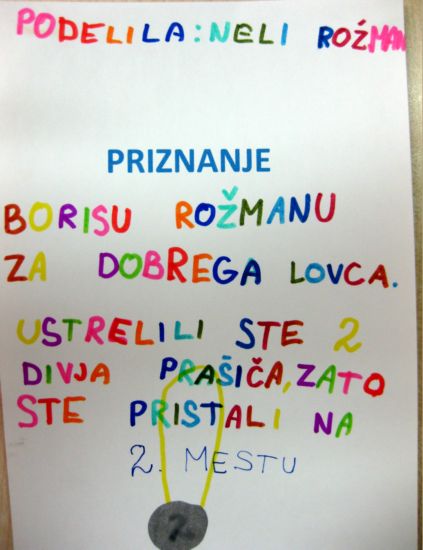 napisali imena vseh učencev in učiteljic. Nestrpni smo izvlekli listek z