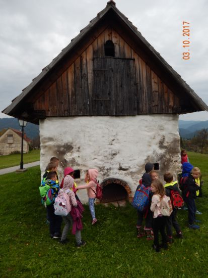 zgrajena iz opeke, deloma pa iz lesa. V njej so včasih sušili sadje. Ta