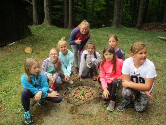 smo mandale iz naravnih materialov ter se sprehodili po poti čutov; z