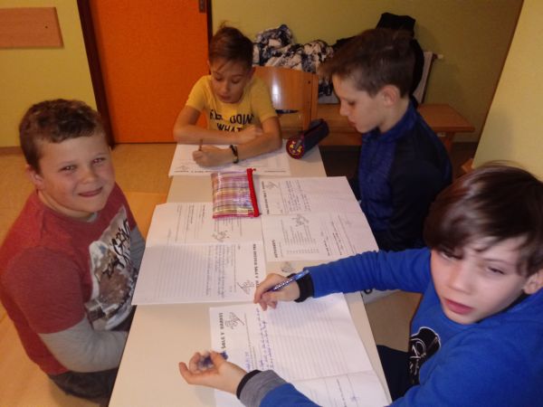 ![]() ![]() In še poslastica ... Živali v domu. To je bilo crkljanja in cviljenja. Pa niso cvilile živalce, temveč naši učenci. Eni od strahu, drugi od samega navdušenja ... Kar se pa Sp. Kungote tiče, pa smo že pravi poznavalci tovrstnih živih bitij. ![]() Vsak trenutek prostega časa pa "tapridni" izkoristijo za pisanje dnevnika. ![]() Pred spanjem smo se zabavali ob šaljivih igrah z nadvse zabavno Greto. Tudi kakšna solzica je pritekla :)