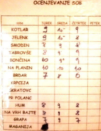 Zajtrk, pospravljanje in ocenjevanje sob, smučanje ...