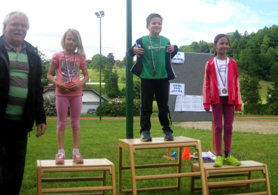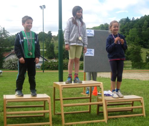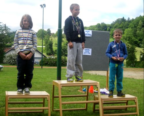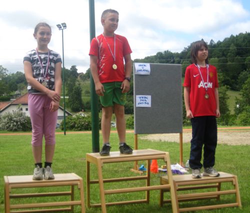 štafete, ki so jo za našo šolo osvojili prvošolci. Ob tem so z zanosom zapeli