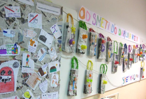 Ustvarjali smo iz odpadkov in izvedli čistilno akcijo. Vsi učenci od 1. do 5. razreda so pridno čistili, pometali šolsko igrišče, dvorišče in šolsko okolico. Bili so tudi vrtnarji, uredili so gredice, s kompostnikom pognojili  zeliščno gredico in vanjo zasadili nekatera nova zelišča, ki so jih prinesli.