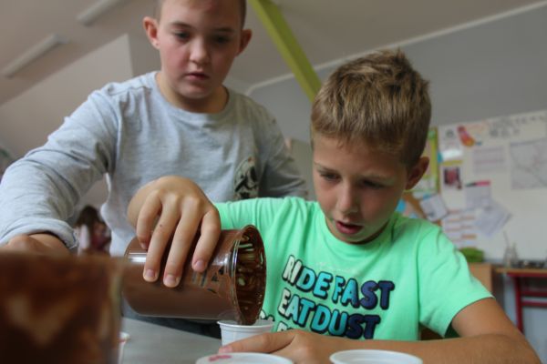 so ju ponosno zlagali na pladnje. V knjižnici je dišalo, učenci so pridno mešali