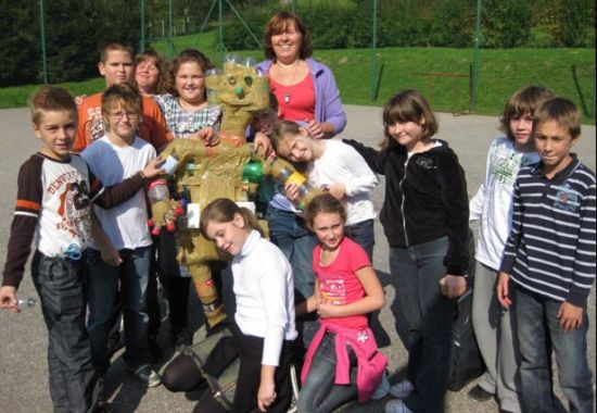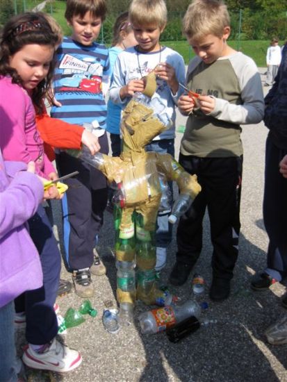 Na začetku izdelovanja eko plastenkota iz četrtega razreda smo se imeli odlično, ker sem delal trup z Nejcem , Jernejem in Tilnom. Trup smo naredili debel, ker smo uporabili zelo veliko »selotejpa«. S svojim delom smo bili zadovoljni. Pri kaširanju učiteljica in mi nismo bili ravno zadovoljni, ker je bilo vse lepljivo, ampak potem se je nekak izšlo.