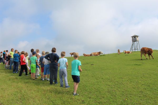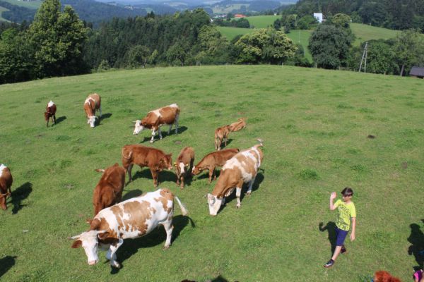 smo stekli po prostranem travniku, na katerem so se pasle krave in telički.