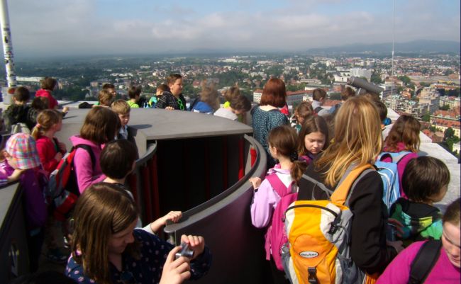 Hoja po polžastih stopnicah na stolp je bila nadvse zabavna in pristali smo zelo visoko. Na vrhu nas je pričakal zanimiv razgled po našem glavnem mestu.