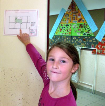 Po pogovoru o požaru in poteku evakuacije smo se naučili, kako po najbolj varni poti iz šole, če bi zagorelo. Naučili smo se »brati« evakuacijske načrte in začeli z vajo. Naučili smo se varnega umika iz vseh prostorov, kjer se običajno nahajamo.