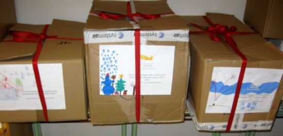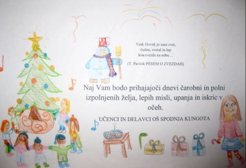 Na vsak paket smo dodali naše voščilo, ki so ga poslikali otroci.