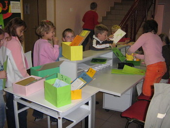 (4.razred): Izmenjevalnica knjig je zelo zanimiva, ker smo vsi naredili knjige. Komaj čakam, da jih vse preberem. |