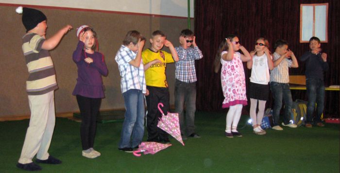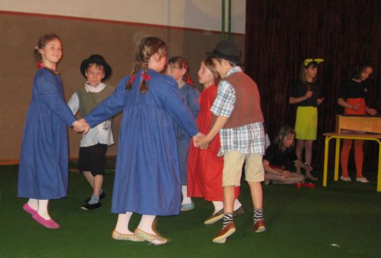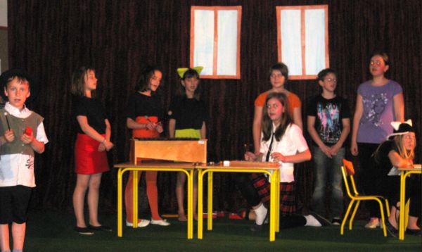Prikupna mucka in maček  sta gledalke in gledalce popeljala skozi pestro paleto šolskih dejavnosti. In ostali so spomini: