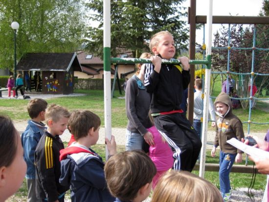 dotikanje plošče z roko. Tudi visenje mi je dobro šlo. (Staš Popijal)