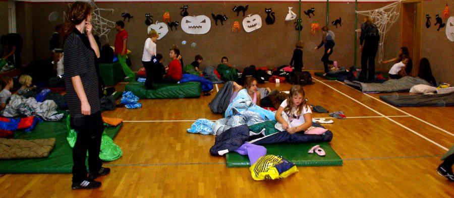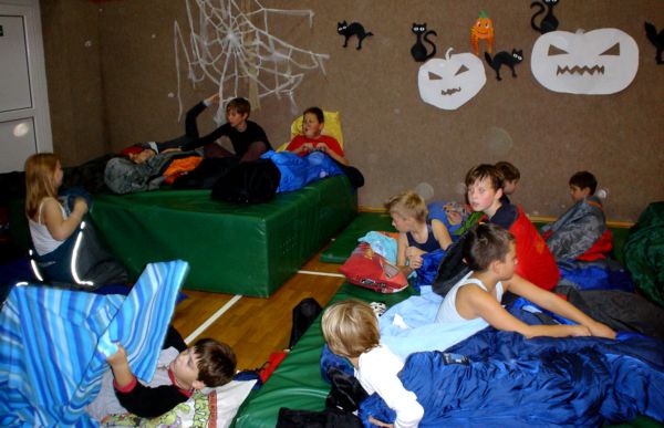 ugasnili glasbo. Potem smo si pripravili blazine in nanje razgrnili spalne
