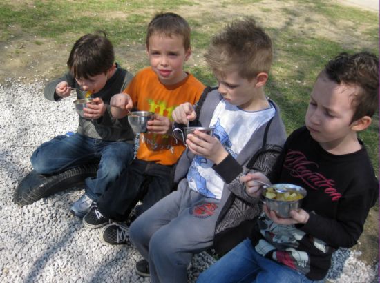 Zaigrali smo priljubljeno igro Med dvema ognjema in se z užitkom posladkali še s sadno kupo.