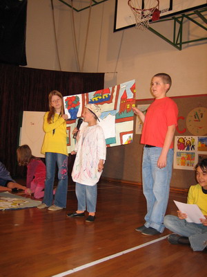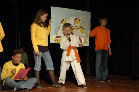 gledališko - plesna predstava ODMOR![]() V šolskem letu 2005/2006 smo se lotili gledališko plesnega projekta. Združili smo gledališke gibe in plesne korake v predstavi ODMOR, ki odseva dogajanje v odmorih, prostem času…in prinaša prve srčke s kraticami imen, nagajanje, potovanje z letalom iz kartona in čudežno preprogo, ples in še marsikaj…..predvsem pa veliko lepih uric, ki smo jih preživeli ob ustvarjanju predstave. Najprej smo se predstavili sošolcem, otrokom vrtca…, povabili smo učence OŠ Marjeta, se udeležili OBMOČNEGA SREČANJA V Pesnici, nato še MEDOOBMOČNEGA SREČANJA v Sladkem Vrhu, sedaj pa smo se uvrstili tudi na SREČANJE OTROŠKIH GLEDALIŠKIH SKUPIN SLOVENIJE v Novem mestu. V juniju se bomo predstavili še staršem in povabili učence iz