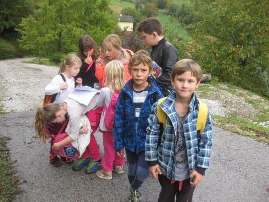 orientacija. Razdelili so se v skupine ter po skupinah sledili potnim znakom.