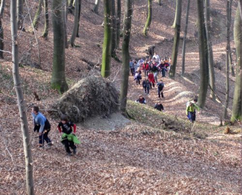 Po strmem vzponu smo z veseljem postali v senci gozda. Čeravno zelo globoko v kotanji, so nas vabile