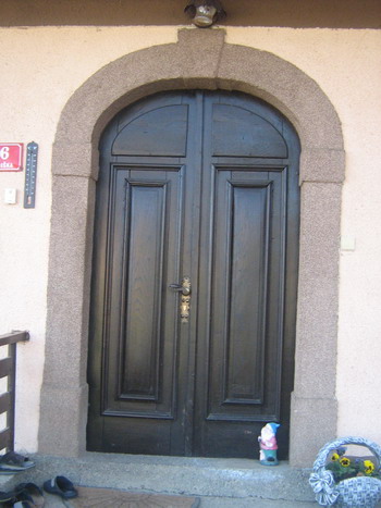 V Sp. Kungoti smo iskali še ostale portale. Sprehodili smo se do bližnje urbačkove hiše in si ogledali glavni portal, katerega del smo predstavili v 1. nagradni drobtinici ter zanimiv lesen portal na zadnji strani.