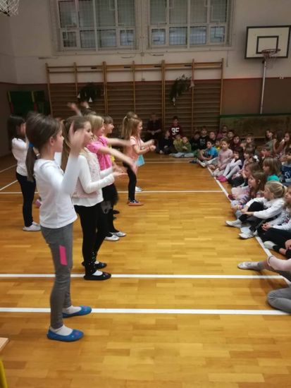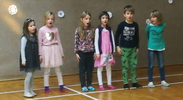 je v telovadnici naše šole. Za program so poskrbeli učenci, ki so se na nastope