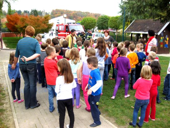 V oktobru, mesecu požarne varnosti, se že vrsto let srečujemo z našimi gasilci. Obiščemo jih v gasilskem domu, pomoč nam nudijo pri požarni vaji. Iskreno se zahvaljujemo za sodelovanje.