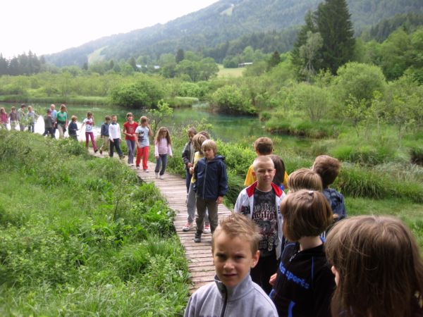 Zjutraj smo si najprej ogledali Zelence. Videli smo male račke. Voda se mi je zdela čisto drugačne barve. Na dnu so bili čisto mali vulkančki. Videli smo tudi skakalnico v Planici.