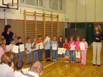 Ker postati šolar ni »kar tako«, je vsak dobil čisto pravo priznanje. Za zelo uspešen konec prvega šolskega dne pa so se prvošolci posladkali s čisto pravo torto.