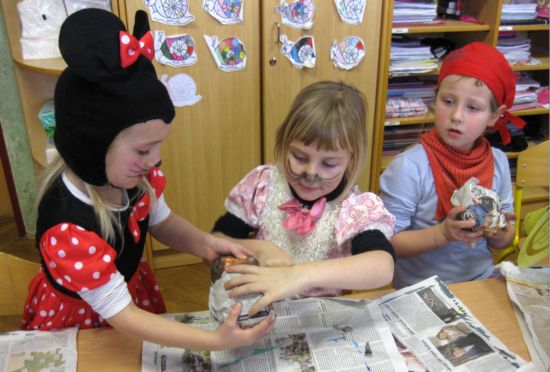 1. razred -kaširanje jajc in gnezda iz slame
