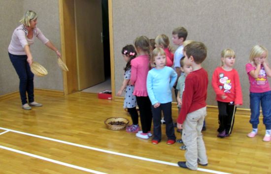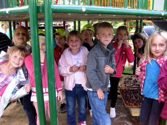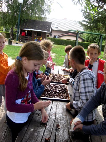 | Teden otroka pa ne bi bil popoln, če se v njem ne bi posladkali še s kostanji. Ker je bila letošnja bera kostanjev bolj slaba, smo jih v petek kar skuhali in jih zunaj kar hitro pospravili v naše trebuščke. Razveselilo nas je tudi dejstvo (posredovala nam ga je učiteljica Simona), da smo se v tem tednu v veliki večini odpovedali bonbonom in sladkarijam in pridno polnili našo skrinjico. | ![]() |
