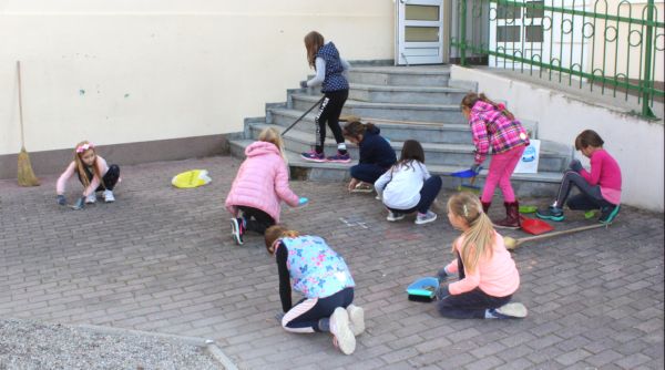 Veliko časa preživimo ob šoli, zato smo se lotili natančnega čiščenja in