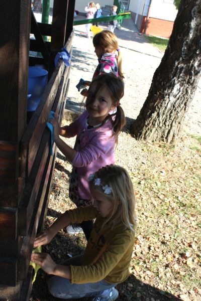 urejanja okolice. Počistili smo igrala, pometali, grabili, obrezovali in