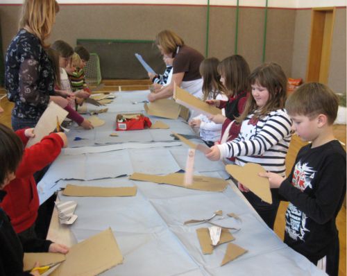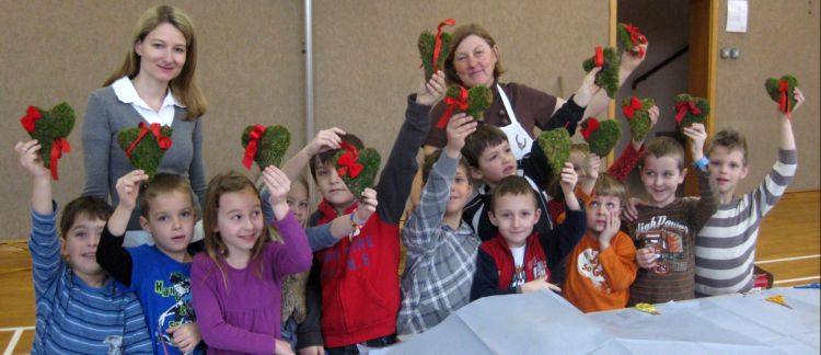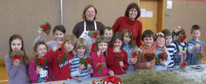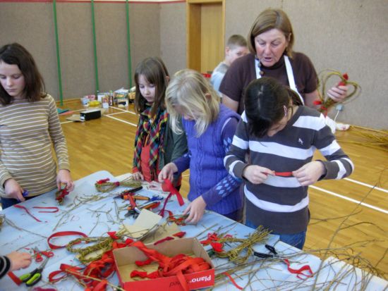 4. razred je izdeloval velika srca, srca v srcu in prav