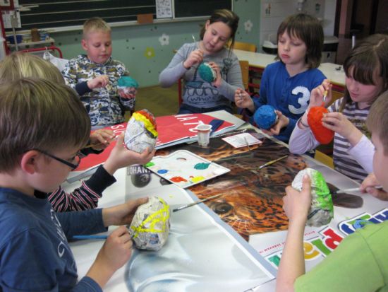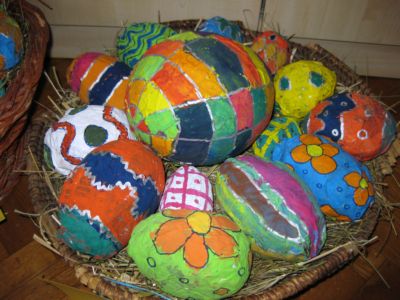 na zmečkan papir in oblikovali jajca. Potem smo jih posušili in pobarvali.