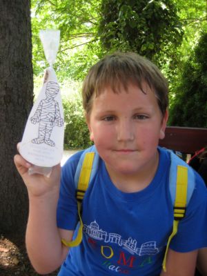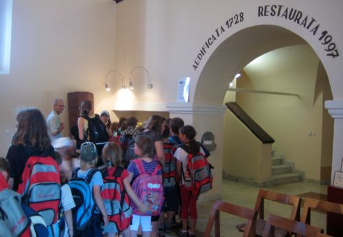 Pred kapelico, v kateri je mumija pogumnega vojščaka Hadika, smo nagradili zavzete raziskovalce, ki so o tem vojščaku in Lendavi izbrskali največ zanimivosti, nato pa nas je prijazen vodič popeljal v prijetno hladno notranjost kapelice.
