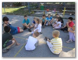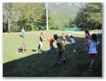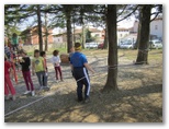 Na igralih so učenci v skupinah med drevesi in igrali reševali različne naloge. Uspešno rešene so jih pripeljale do skritega zaklada. Morali so šteti stvari na igralih, razbrati skrito sporočilo, iskati predmete različnih barv, ugibali so pantomimo ... Vsem skupinam je uspelo najti zaklad.