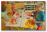 Naši mali ustvarjalci so popoldan v podaljšanem bivanju preživeli kot čisto pravi slikarji. Podobno kot tetka jesen so zavihteli čopiče in na risalnih listih pričarali barvit jesenski vihar.