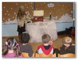 v Četrtek, 18. decembra, je na naši šoli gostovalo gledališče Bičikleta z lutkovno igrano pravljico Babica zima. Gledališče je vsem radovednežem, ki še niso odeti v tople kožuščke ali puloverje ter tistim, ki jim manjkajo rokavice, šali in kape, s pravljico o babici zimi povedalo, kje lahko najdejo svojo zimsko opravo. |