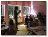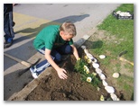 Naš predsednik šolskega parlamenta s kar dvema čopičema v rokah. Tudi na Policah smo bili. Uredili smo tudi okolico šole. Pozor - te rože so naše!!! Skupaj smo jih posadili!
