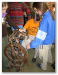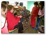sir. Ovce so strigli in volno predli. Pokazala nam je, kako so volno česali