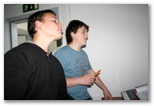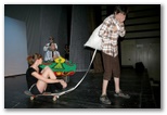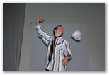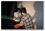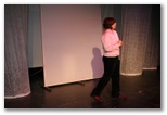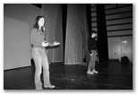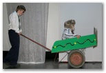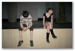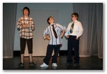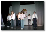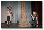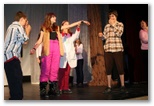 skupino. Martin Krpan z Vrha doma pa strašno močan, kot je naslovljena Petrova različica Levstikove povesti, je sestavljena iz prizorov - izbrani so bili natančno tisti, ki tako prijazno znano pripovedujejo zgodbo o klenem slovenskem junaku, da bi lahko besedilo mrmrali skupaj z igralci - ki jih zaokrožuje sodobna interpretacija zgodbe, tako skozi glasbo, sceno in kostumi, kot tudi skozi jezik ter vsebinsko zapletanje in razpletanje te moderne povesti, znotraj katere je tradicionalni Krpan znova zgled, ki znova zares prepriča in zmaga. Novi interpret, ki je vsebino povzemal po zgodbi Jane Kolarič, se je v svojem scenariju zelo natančno držal prvobitne Levstikove rdeče niti, le ob koncu sta si oba - pisateljica in Peter - dovolila drobno, pa vendar … spremembo, srečni konec je še srečnejši, kajti mična cesarjeva hči očara Krpana, ki jo vzame s seboj, kobilica se pa za glavo drži … Publika na premieri je zgodbo spremljala in doživljala, kot bi jo prvič slišala. Vsak prizor je bil spremljan z grobno tišino, vsak song je bil nagrajen z bučnim aplavzom, vsaka zabavna iztočnica je vzpodbudila svojo salvo smeha. Še posebej velja izpostaviti odlično igro mladih članov šolskega dramskega krožka, ki jih je treniral Peter, pohvaliti pa celotno ekipo, ki je pripravila celostno izvrstno predstavo. Avtorica prispevka: Sanda, TIC Ajdovščina Fotografije