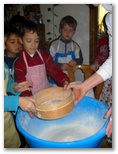 Pipan. Predstavila nam je peko kruha. Otroci so bili razdeljeni v tri