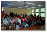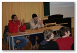 POGOVOR Z MURATOM IN JOSEOM V torek, 18.3. smo gostili glasbeni duet Murat & Jose, ki sta prišla na prireditev ob zaključku projekta Evropa v šoli. Le-ta je bil letos posvečen medkulturnemu dialogu. V stopničasti učilnici so se zbrali učenci od 5. razreda osemletke do devetošolcev. Srečanje z gostoma je trajalo dobro šolsko uro. V uvodu so si pogledali videospot z naslovom Od ljudi za ljudi. Gostoma so na kratko predstavili našo šolo in projekt v katerem so sodelovali. Bilo je prijetno in sproščeno. Učenci so ju spraševali od pevskih začetkov, do načrtov za novo ploščo, ali besedila nastajajo spontano, kakšna se jima zdi situacija glede medkulturnosti, strpnosti in sprejemanja drugačnosti v Sloveniji in v tujini. Izpostavili so London, kjer sta gosta tudi že nastopala. Murat (Marko končuje študij ekonomije) in Jose (Joseph je diplomirani pravnik in občasno kot amater igra v gledališču) sta odgovarjala sproščeno in z razmislekom, tako kot to izvajata prek glasbe. Njune pesmi so tudi v učbenikih Albince Pesek za glasbo na predmetni stopnji oz. v zadnjem triletju. Na koncu so ju učenci zasuli s prošnjami za avtogram.