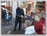 PRI GASILCIH Drugošolci smo se pri predmetu Spoznavanje okolja pogovarjali o naravnih nesrečah (potresih, poplavah,…) in naleteli tudi na vprašanje, kdo v takih primerih priskoči na pomoč. Poleg policistov, reševalcev, prostovoljcev so seveda nepogrešljivi tudi gasilci. Želeli smo pobližje spoznati njihov poklic, njihovo delo, zato smo se dogovorili za obisk. Poveljnik gasilcev v Ajdovščini nas je prijazno sprejel, predstavil naporno in težko delo gasilcev ter razkazal gasilski avtomobil in vso potrebno opremo. Najbolj zanimivo pa je bilo, ko smo prijeli za pravo brizgalno cev in preizkusili, kako deluje. Za spomin pa smo pa smo posneli še nekaj fotografij. 2.a, 2.b in 2. c razred