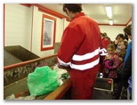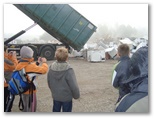 OGLED ODLAGALIŠČA NA VRHNIKI - EKO KROŽEK VTISI OTROK Z avtobusom smo prispeli na odlagališče na Vrhniki. Sprejel nas je vodič Edin. Najprej smo si pogledali, kako stehtajo vozila, ki pripeljejo odpadke. Videli smo tudi, kako delavci ročno ločujejo odpadke. Napravil sem tudi videoposnetek. Ogledali smo si velike kupe ločenih odpadkov. Videli smo, kako je kamion stresel stare hladilnike, sušilne in pralne stroje. Vodič nam je povedal, da vsak mesec pripeljejo take predmete različnih znamk in velikosti. Ogledali smo si tudi kup plastičnih embalaž sveč s pokopališča. Nazadnje pa še kompost. Naučil sem se, da je resnično potrebno ločevati odpadke in z njimi ravnati tako, da bodo uporabljeni za nove stvari. (Kristjan, 5.a) Na odlagališču sem spoznal, da tam zelo smrdi. Videl sem, kako ločujejo odpadke. (Maj, 5.a) Izvedel sem, kako ločujejo odpadke. Karton, steklo, plastika, kovine in papir. Videl sem tekoči trak, ki je peljal smeti v sortirnico. Tehtnico, ki je namenjena tehtanju vozil, smo preizkusili tudi mi: ko smo šli vsi na njo, je pokazala 900 kilogramov. (Denis, 5.a) Na ekskurziji sem videla, kako na odlagališču zbirajo smeti in jih potem stisnejo skupaj. (Valentina, 3.b) Zvedel sem, kako ločujejo odpadke. Povedali so nam tudi, kako naredijo kompost. (David, 4.a) Ko smo prispeli na Vrhniko, je bilo na odlagališču zelo mrzlo. Naučila sem se, da se odpadki ločijo na uporabne in neuporabne. (Teja, 4.a) Naučil sem se, da se zbirajo nevarni in nenevarni odpadki. Nenevarni so papir, steklo, plastika. Nevarni pa so plini. Na smetišču je tudi veliko uporabnih stvari, razne igrače in drugo. V življenju moramo ločevati odpadke za čisto okolje. (Luka, 5.b) Izvedel sem, kako se stvari reciklira. Povedali so nam, v kateri zaboj spada kakšna stvar. Videli smo, kako je kamion stresel hladilnike. Povedali so nam, da je v hladilniku strupen plin. (Aljaž, 5.b) Videla sem, kako so delavci ločevali smeti. Veliko odpadkov lahko ponovno uporabijo za surovine. Povedali so nam, da je kompost uporaben za vrtove. (Veronika, 7.r. EPP) Videla sem, kako so bili odpadki stisnjeni v obliki kock. Smrdelo je, ker odpadki gnijejo. (Chiara, 5.r. EPP) Zvedel sem, da ločene odpadke predelajo in tako pridobijo nove izdelke, ki jih lahko spet uporabimo. (Robert, 9.r. EPP) Videla sem veliko smeti, v sortirnici smo pogledali, kako so ločevali smeti. Bilo je zanimivo. (Janja, 7.r. EPP) Bilo mi je zanimivo, videl sem velike kupe smeti. Spoznal sem, da je treba skrbeti za naravo. (Žan, 8.r. EPP) Na odlagališču je bilo veliko smeti, smrdelo je. Videla sem, kako so delavci ločevali plastiko, papir in pločevinke. (Sara, 8.r. EPP)